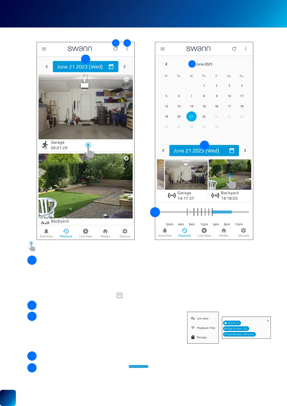 stored recordings, live recordings, and those located on the DVR/NVR. To access recordings from other dates, simply