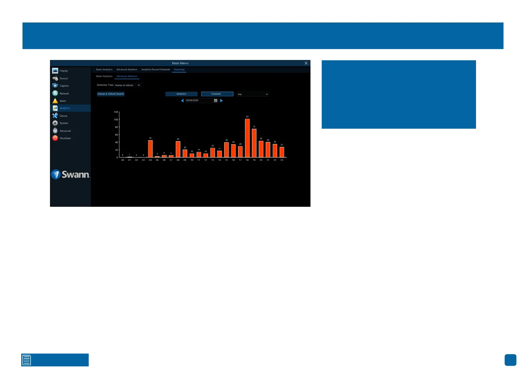 Analytics: By default, both human and vehicle statistics are selected. Click