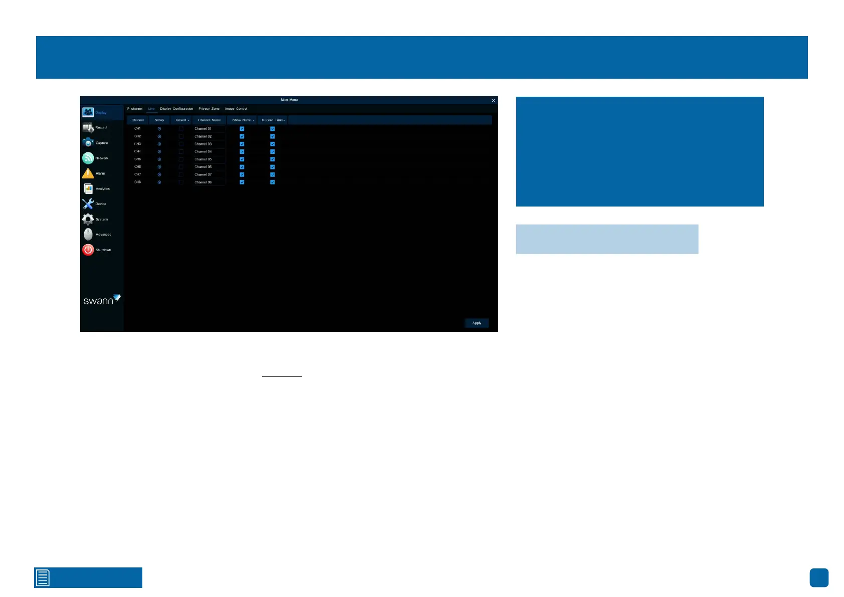 Channel Name: Enter a name for the camera selected. It can be up to 16