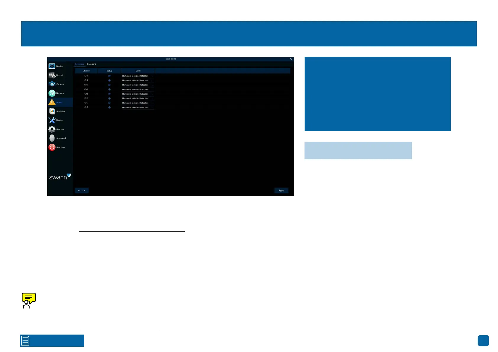 more (see page 29 - Alarm: Detection - Actions).
