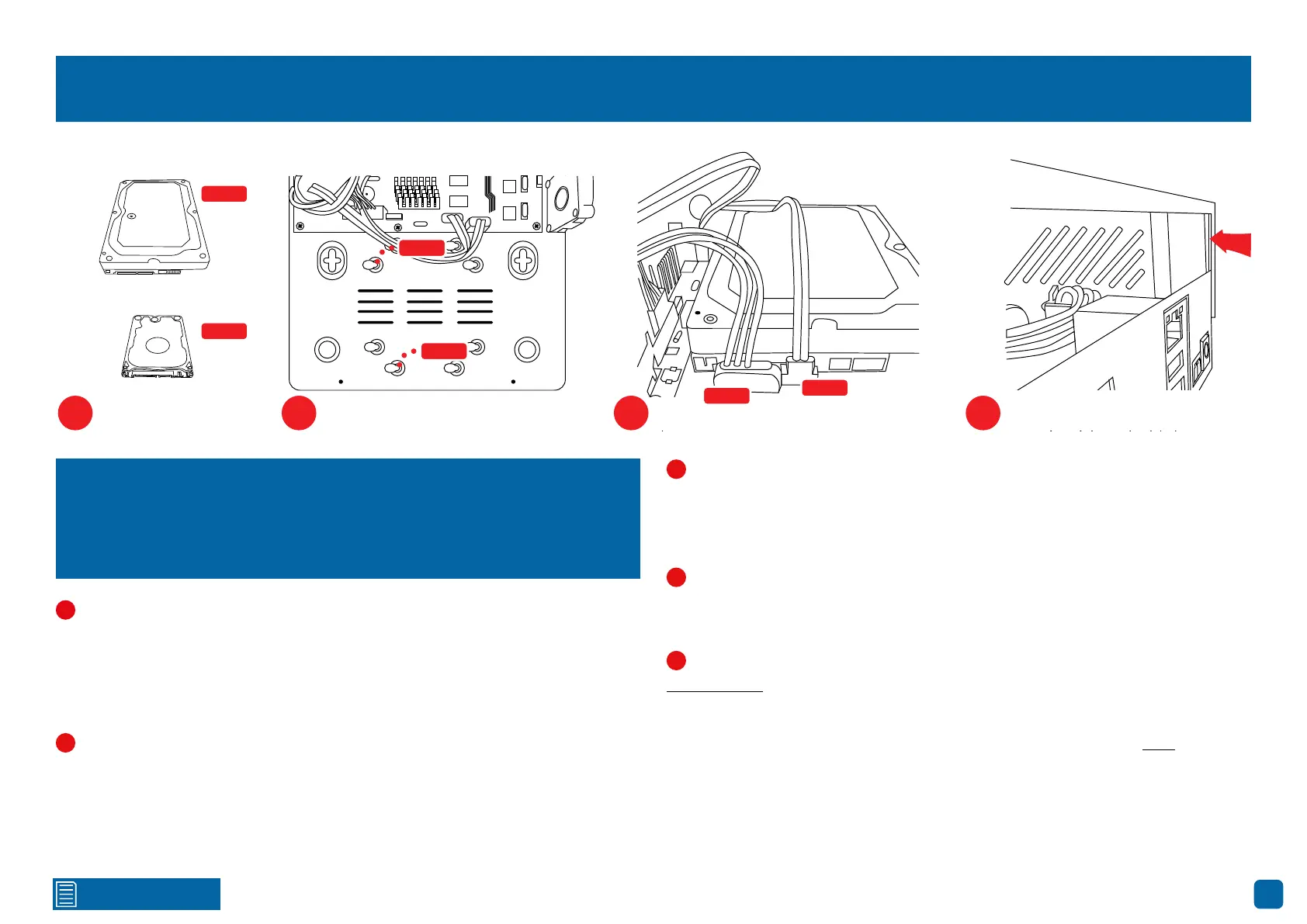 Slide the hard drive into the relevant mounts, then connect the power and