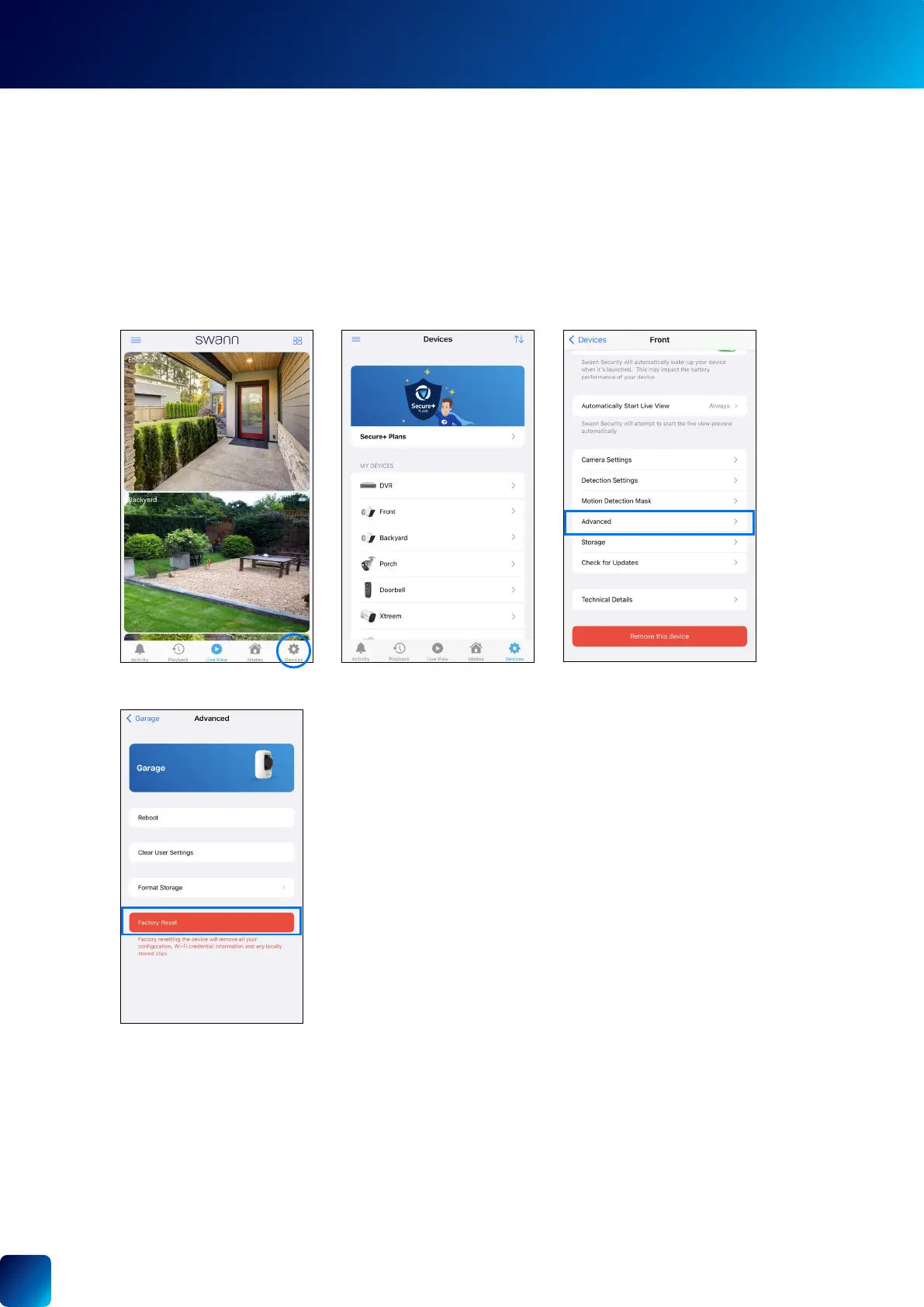 Note: Factory resetting your camera does not remove (unpair) it from your Swann Security account. If you're giving