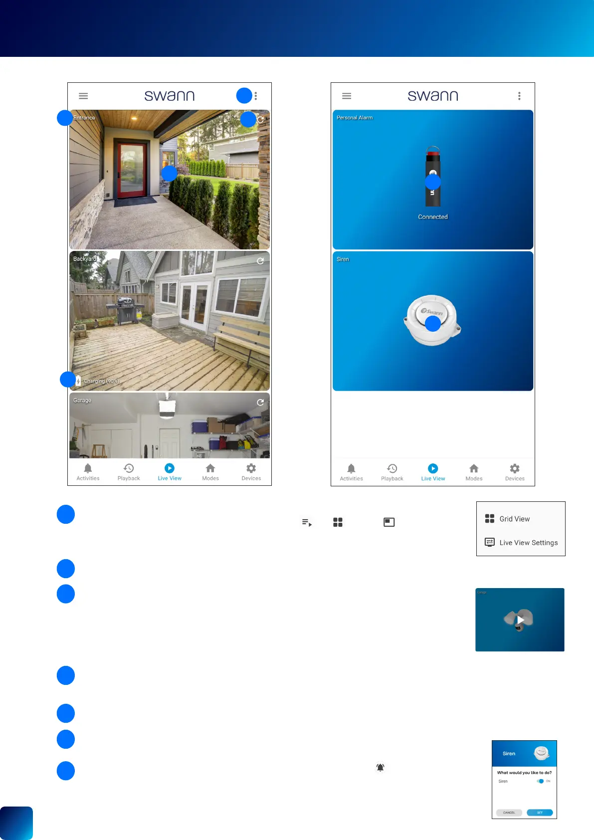 (device-dependent) such as quick snapshots/clips, 2-way talk, pan and tilt controls, spotlight, siren, and more. For