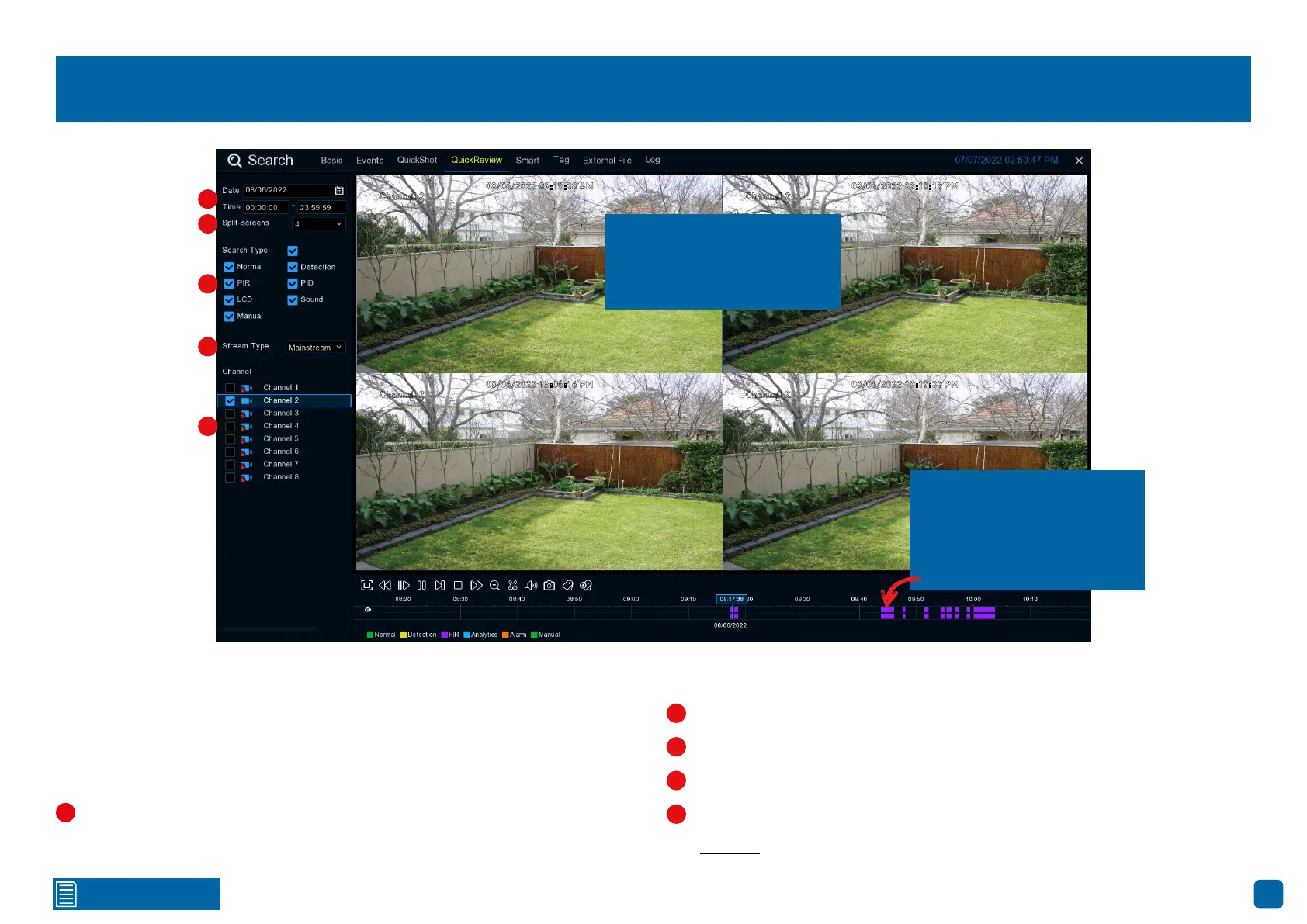 QuickReview allows you to play multiple normal recordings and motion events