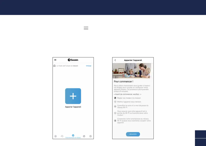 l'écran (ou appuyez sur l'icône de menu en haut à gauche et sélectionnez «Jumeler l’appareil»).