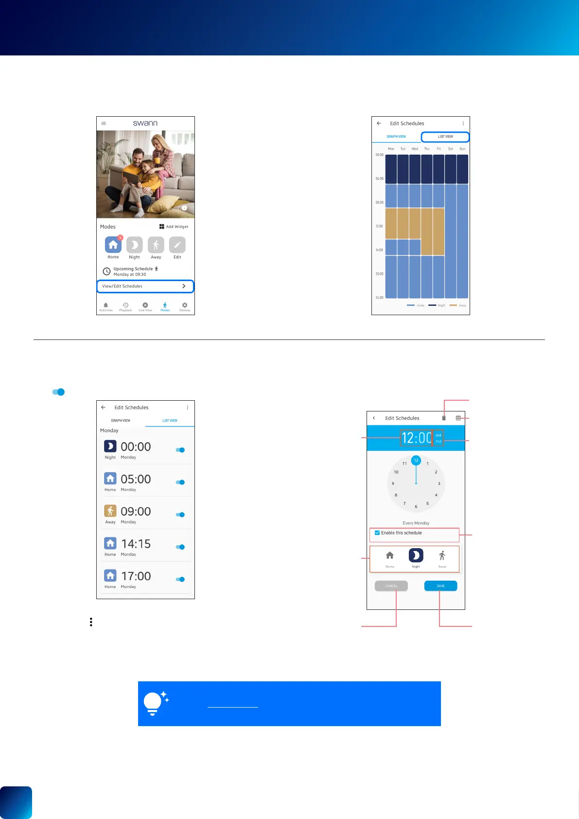 1. From the Modes tab, tap View/Edit Schedules.