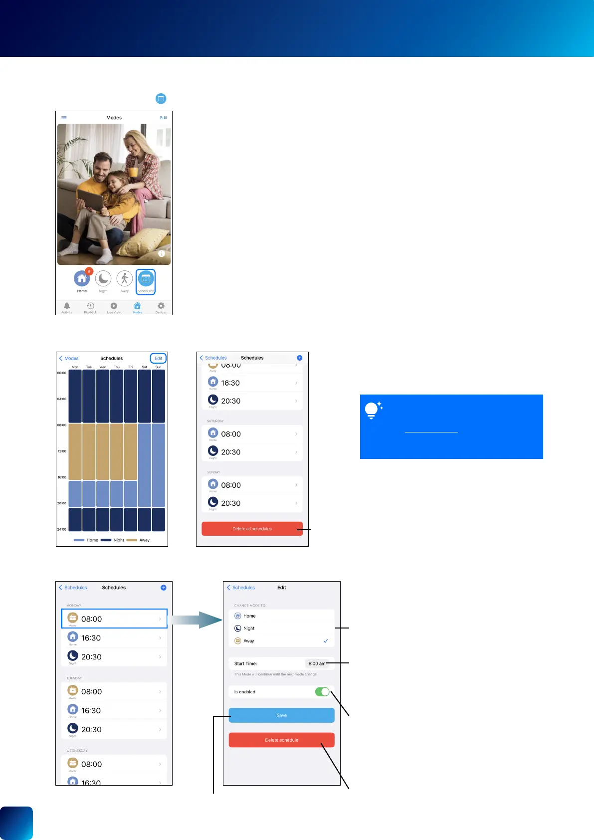 1. From the Modes tab, tap . The Schedules screen is displayed.