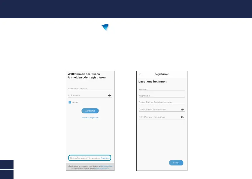 „Noch nicht registriert? Hier anmelden” tippen. Dann aktivieren Sie Ihr Swann Security Konto,