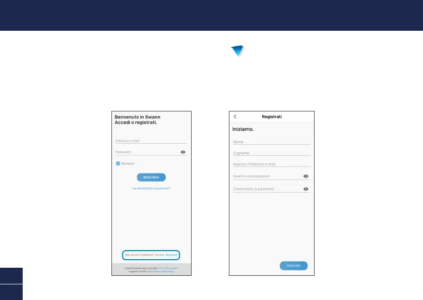 2 Aprire l’app e creare l’account Swann Security toccando “Non ancora registrato? Iscriviti” nella