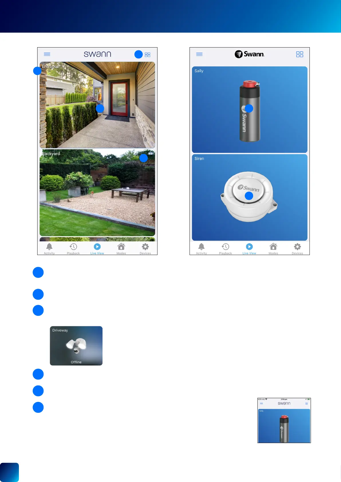 Tap the tile to display live view of the selected camera in single view mode and access additional camera