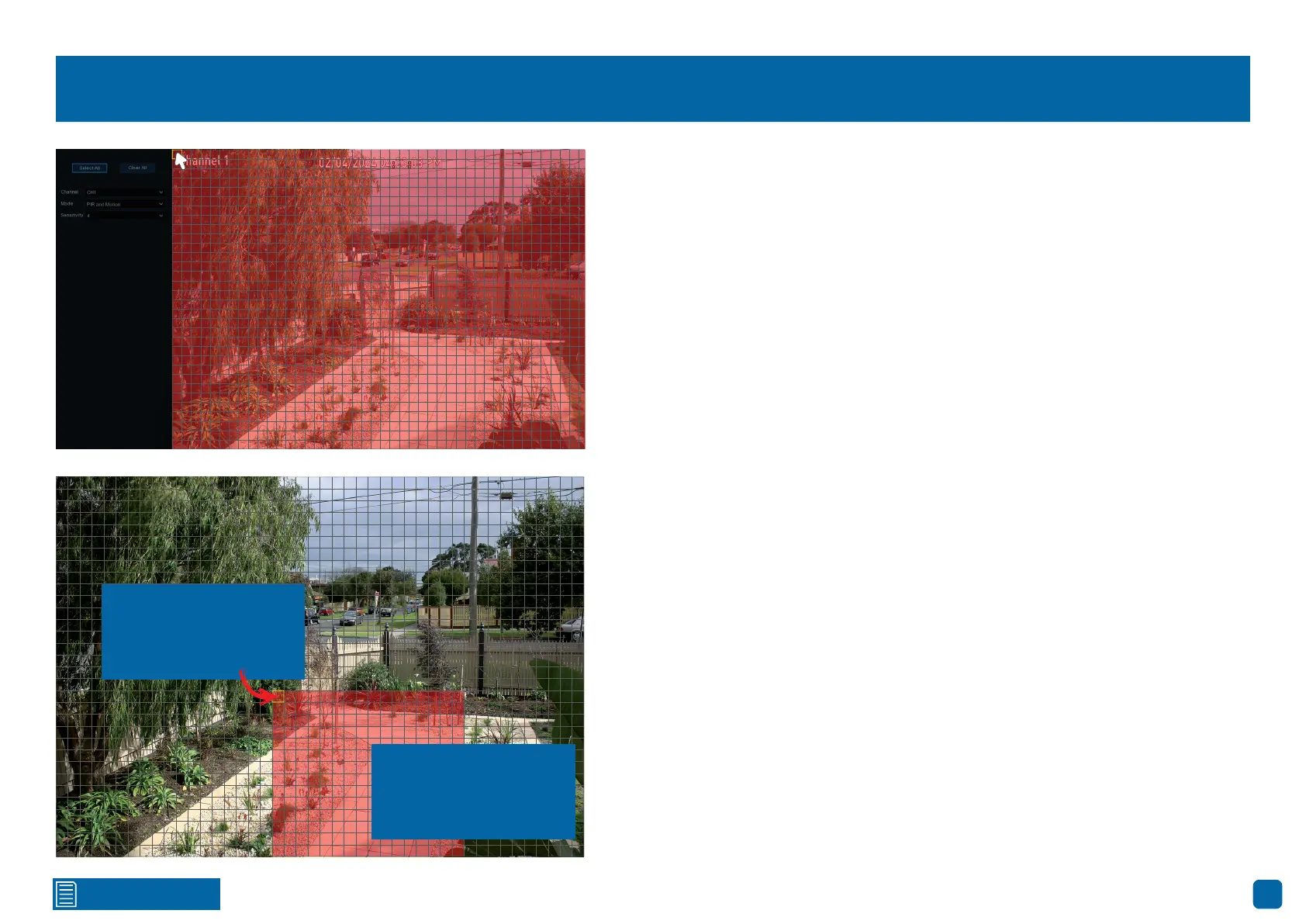 3. Multiple areas can be created. Each cell or square can be enabled to detect mo-