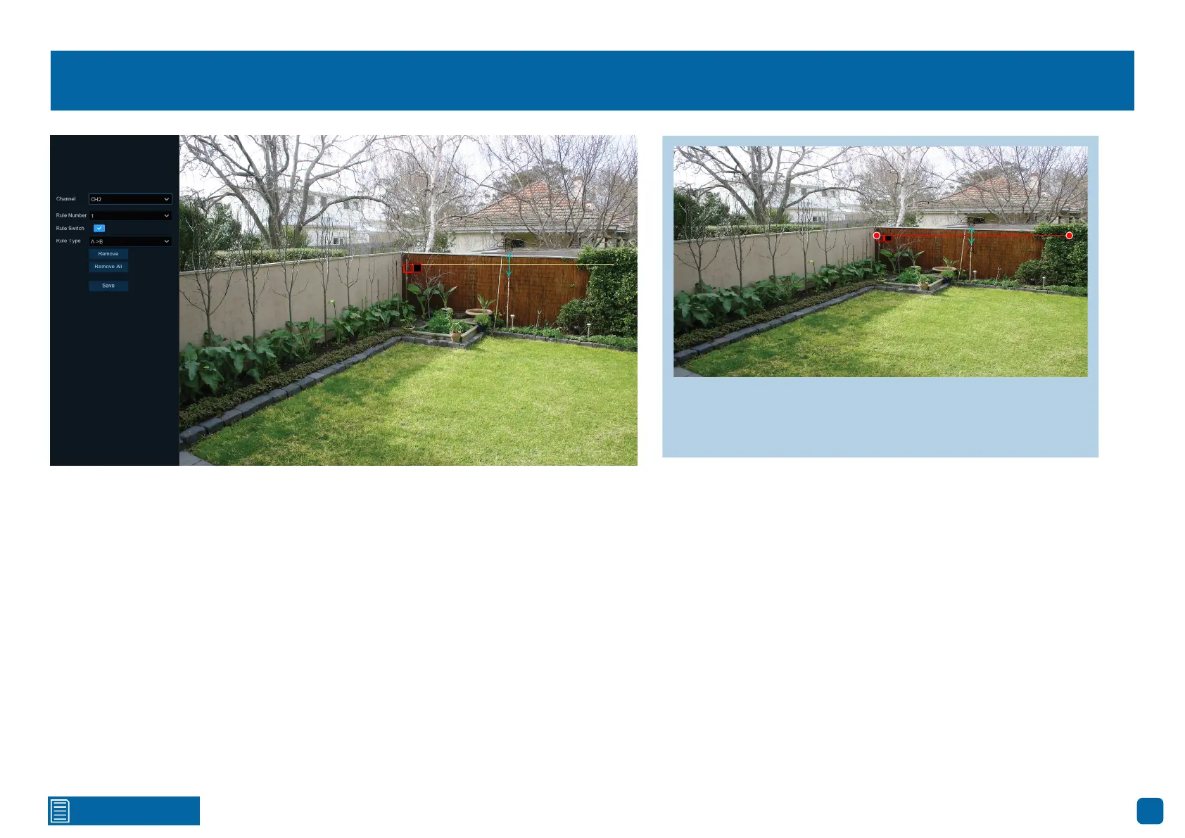 As illustrated above left, a detection line has been drawn across the fence line.