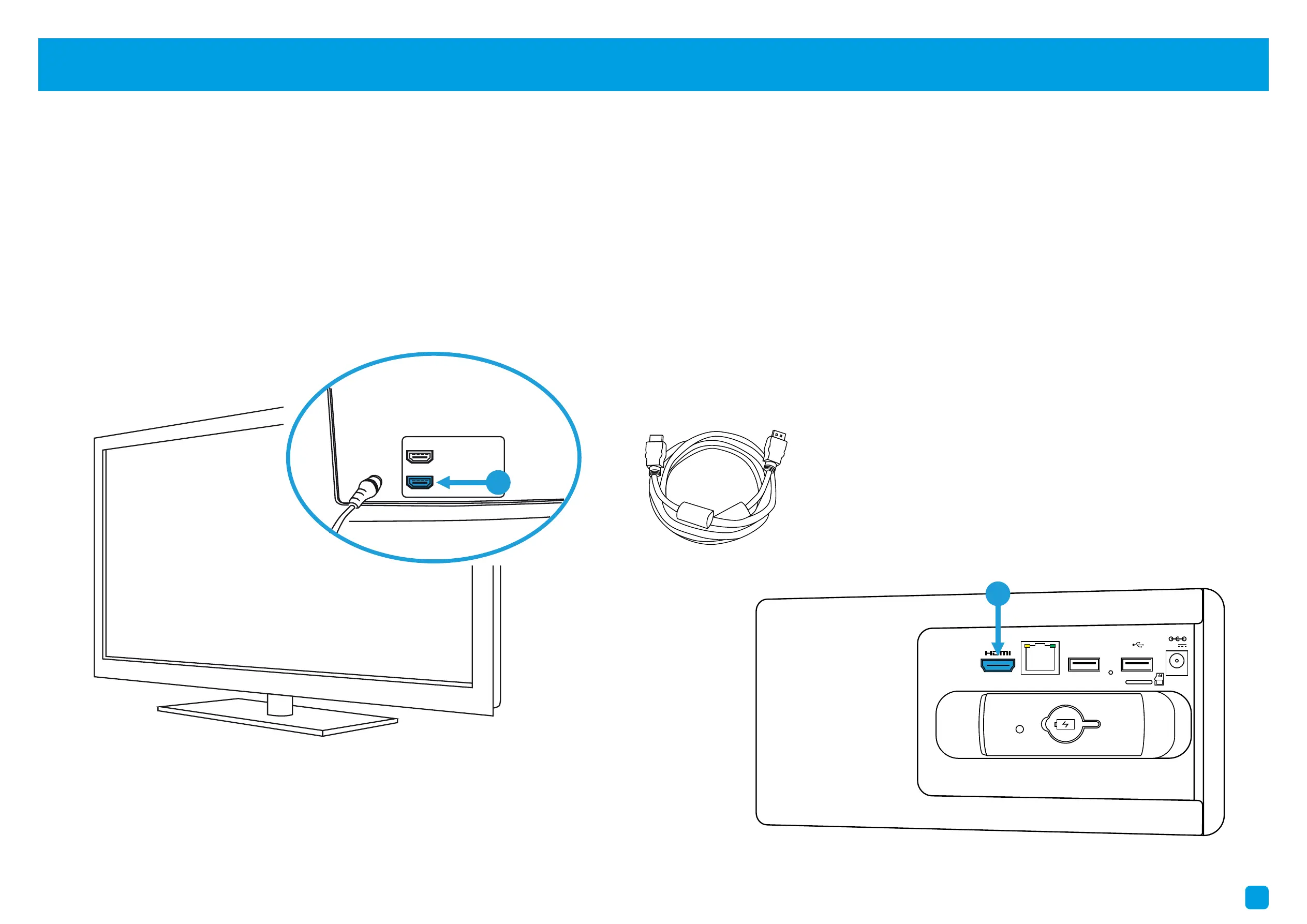 Connect to your TV: Connect the supplied HDMI cable to the HDMI port (1), then connect the other end to a spare HDMI
