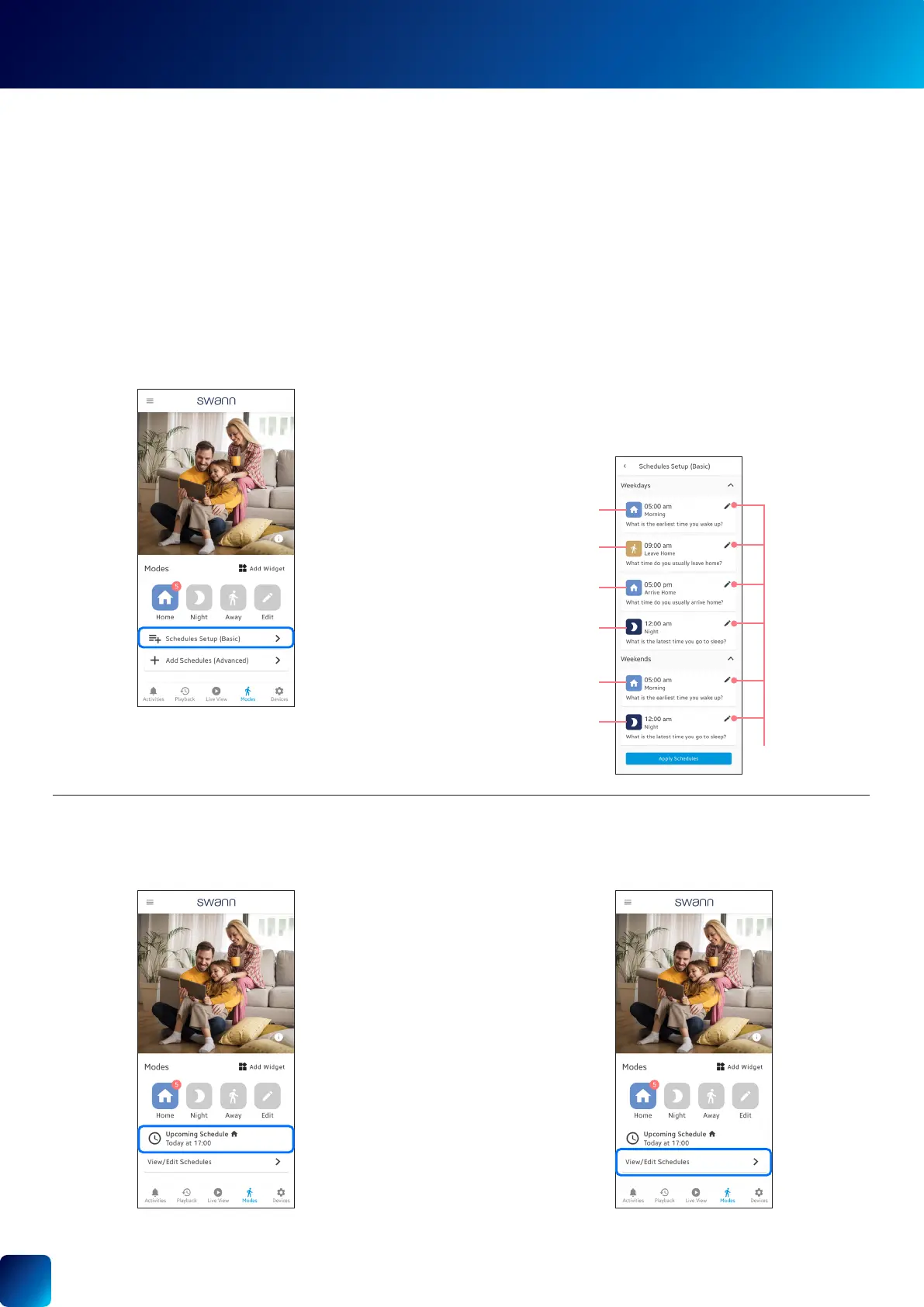 Simply create a schedule whenever you want a mode change to occur—it's a convenient and exible way to control your Swann