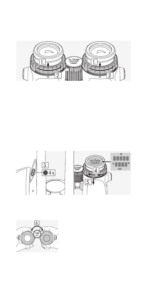 5. Drücken Sie danach den rechten Dioptrienstellring wieder