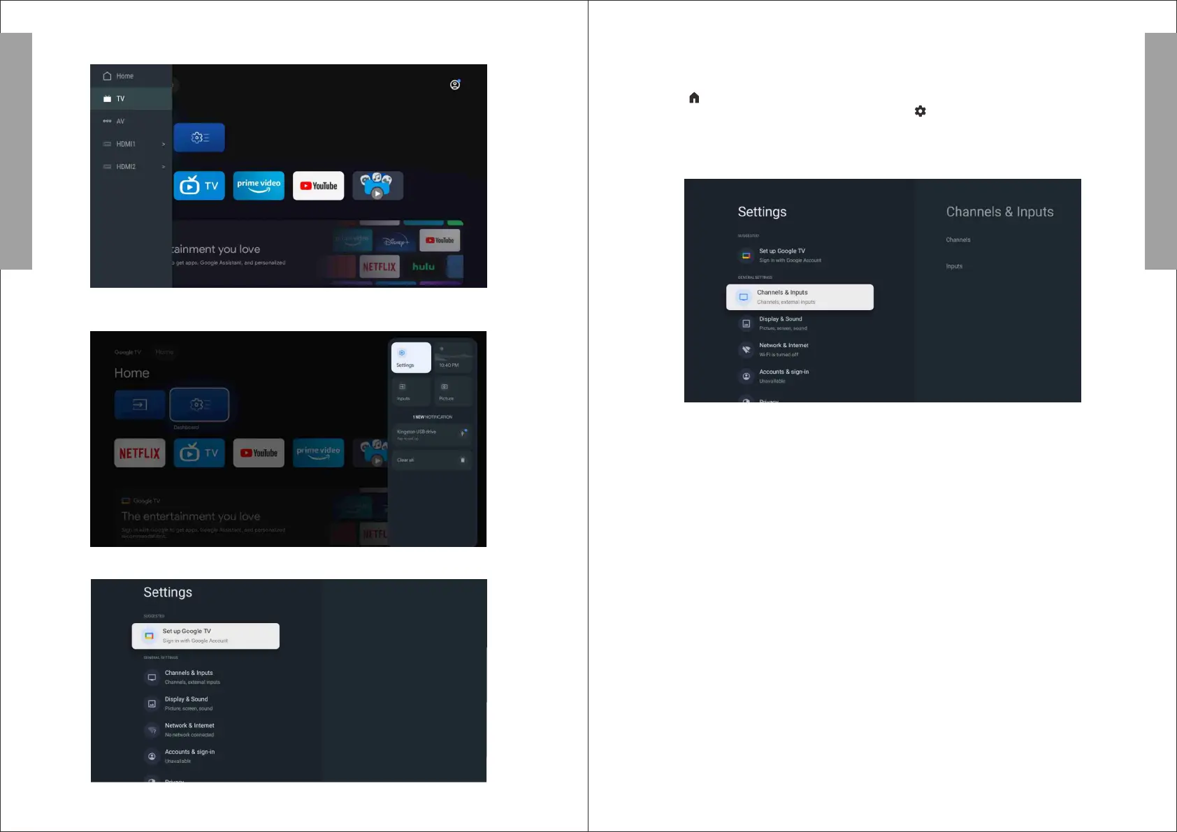 1 Go to Settings > Channels & Inputs > Channels