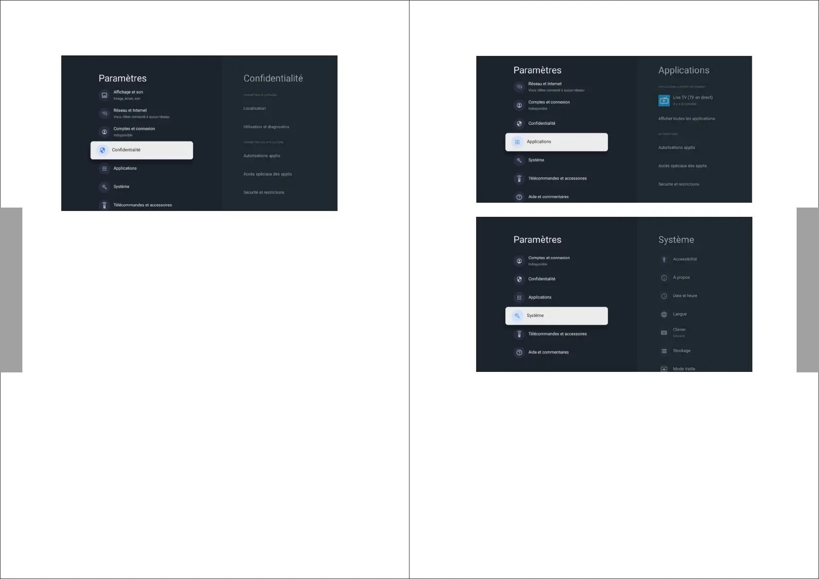 Cette section présente les réglages de confidentialité de votre téléviseur, de votre compte