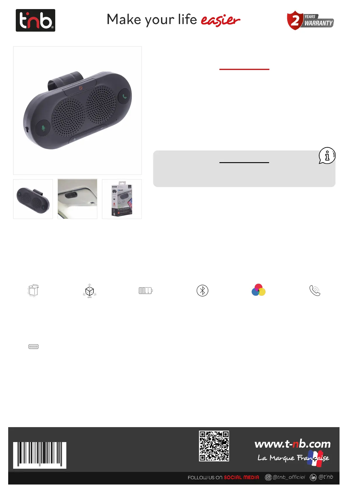With this Bluetooth hands free kit, manage your calls in your vehicle safely and legally.