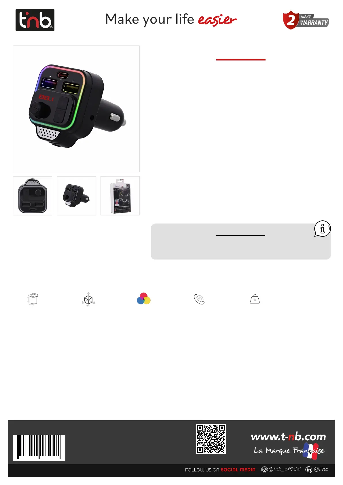 You can connect the FMCT09 to your devices via a Bluetooth connection, a jack cable,