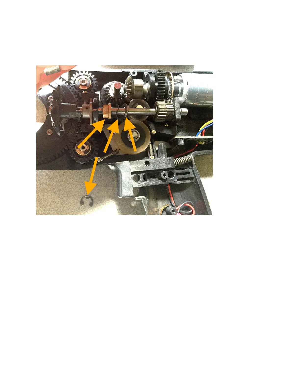 is a c-clip, washer, wave spring washer, and brass bushing. Remove the c-clip, and move the