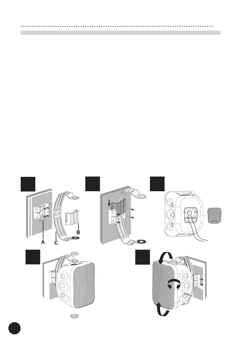 - Slide the speaker into the bracket (C) and screw top and bottom bracket knobs to secure the