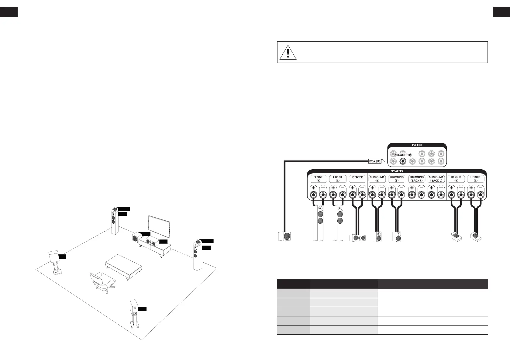 It is essential to connect the loudspeakers using the correct polarity. Make sure to connect the “ +