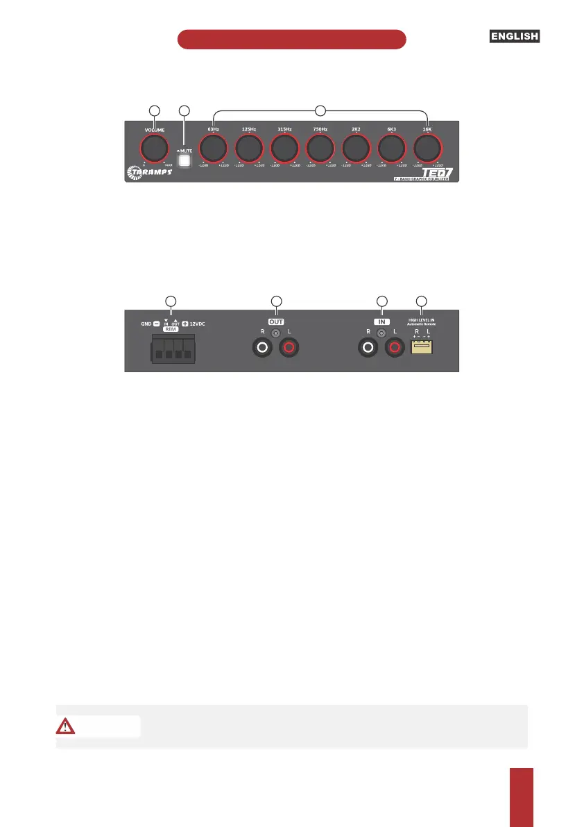 3- Gain controls: Adjusts the gain of each frequency from -12dB to +12dB.