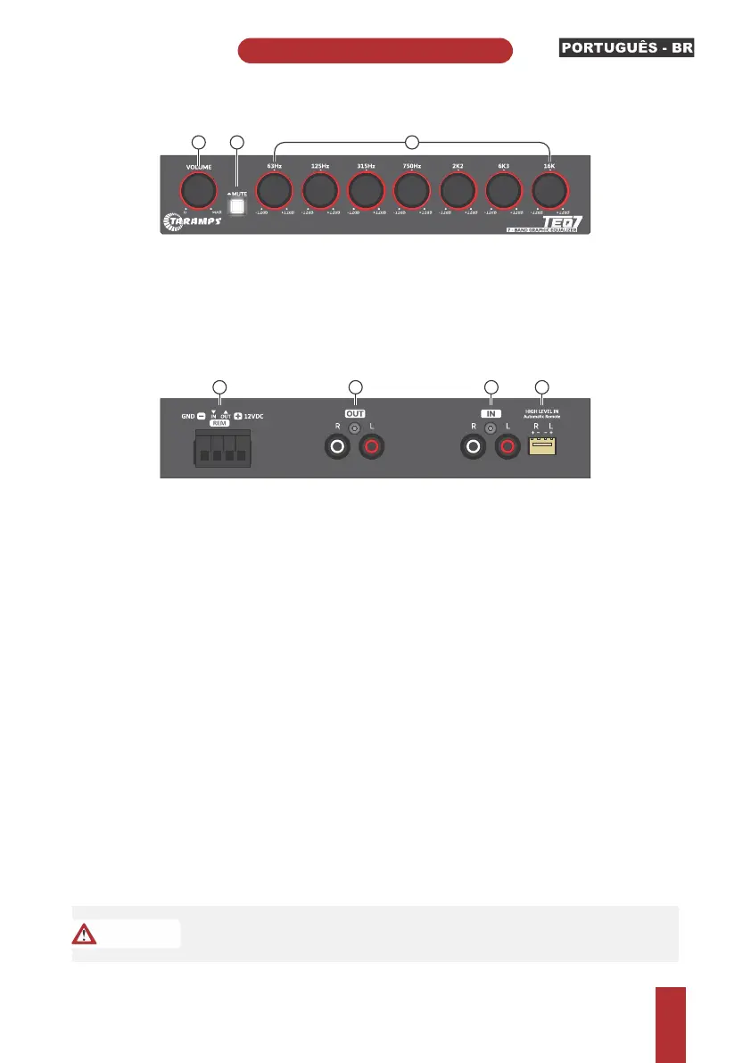 3- Controles de ganho : Ajusta o ganho de cada frequencia de -12dB a +12dB.