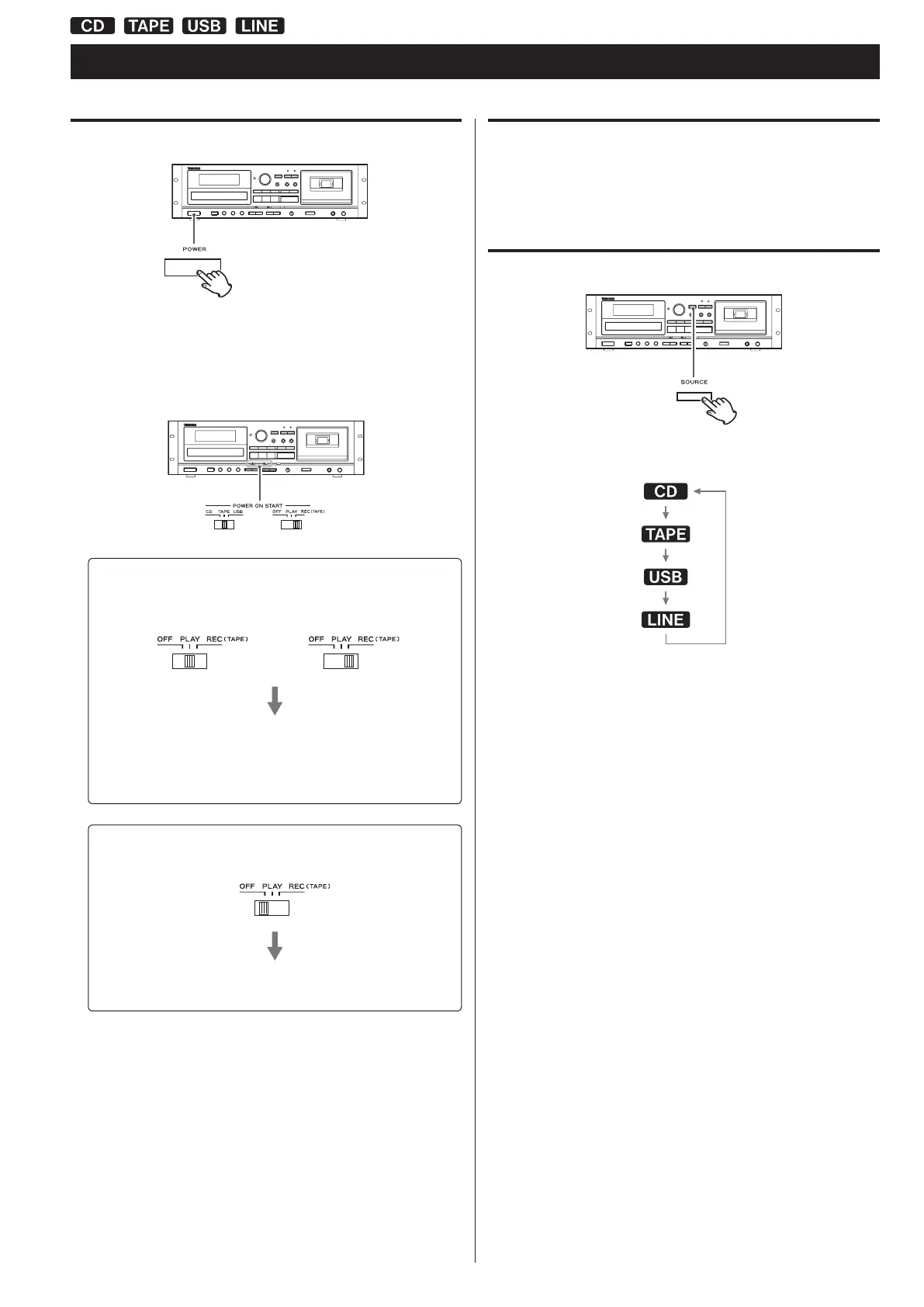 POWER ON START OFF-PLAY-REC (TAPE) switch to the OFF