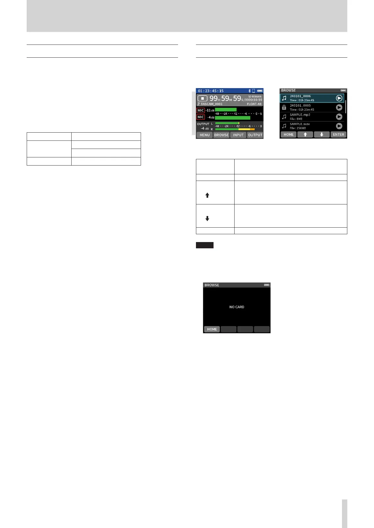 HOME screen when stopped BROWSE screen
