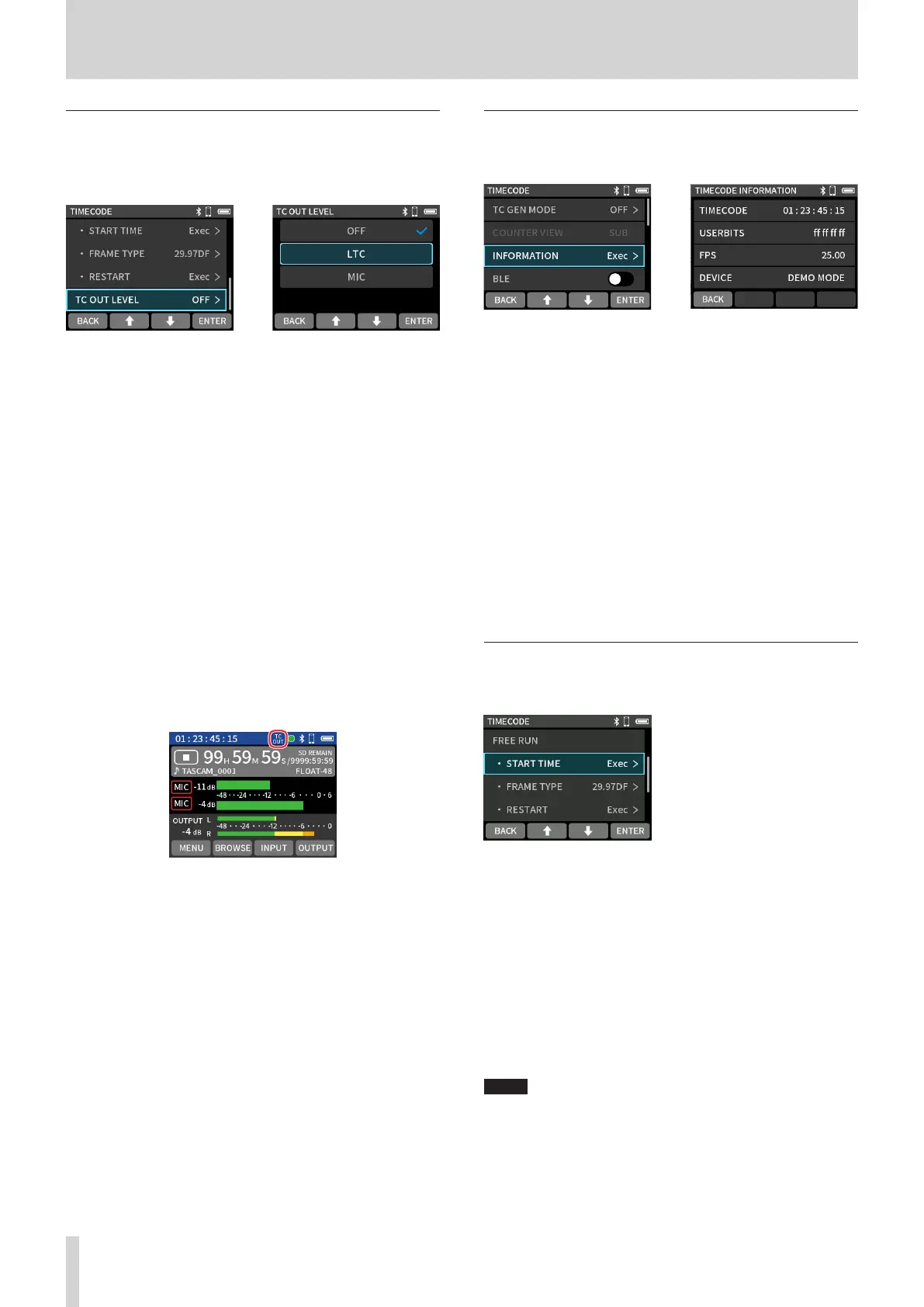 o When TC OUT LEVEL is set to LTC or MIC, LTC will be output