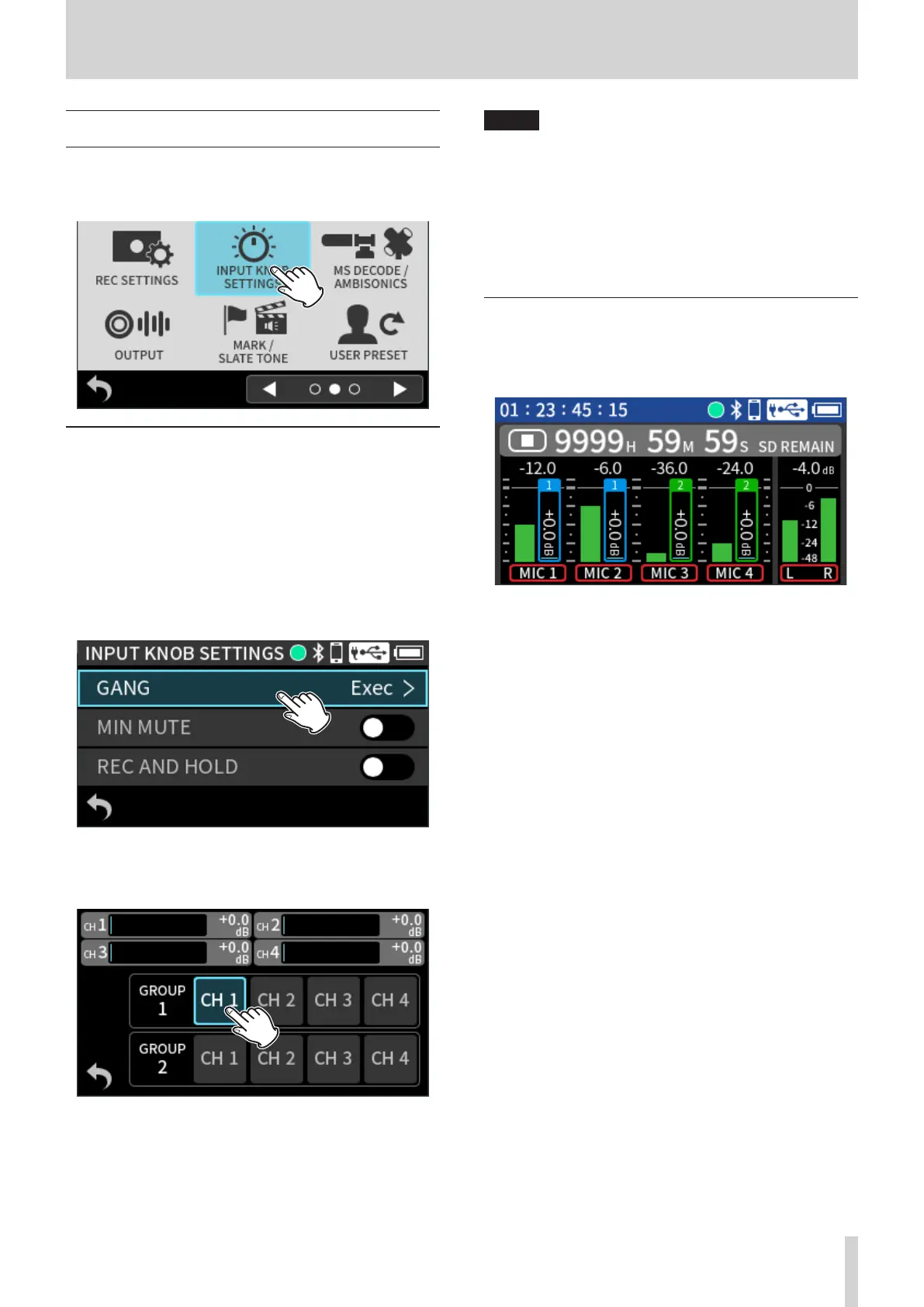 INPUT KNOB SETTINGS > GANG.