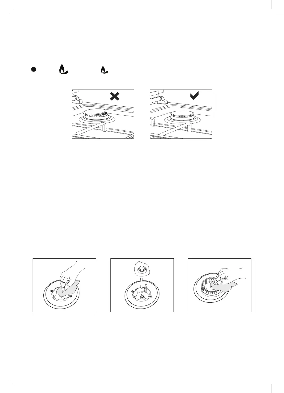 5. Before operating your hob please make sure that the burner caps are well positioned. The right placement