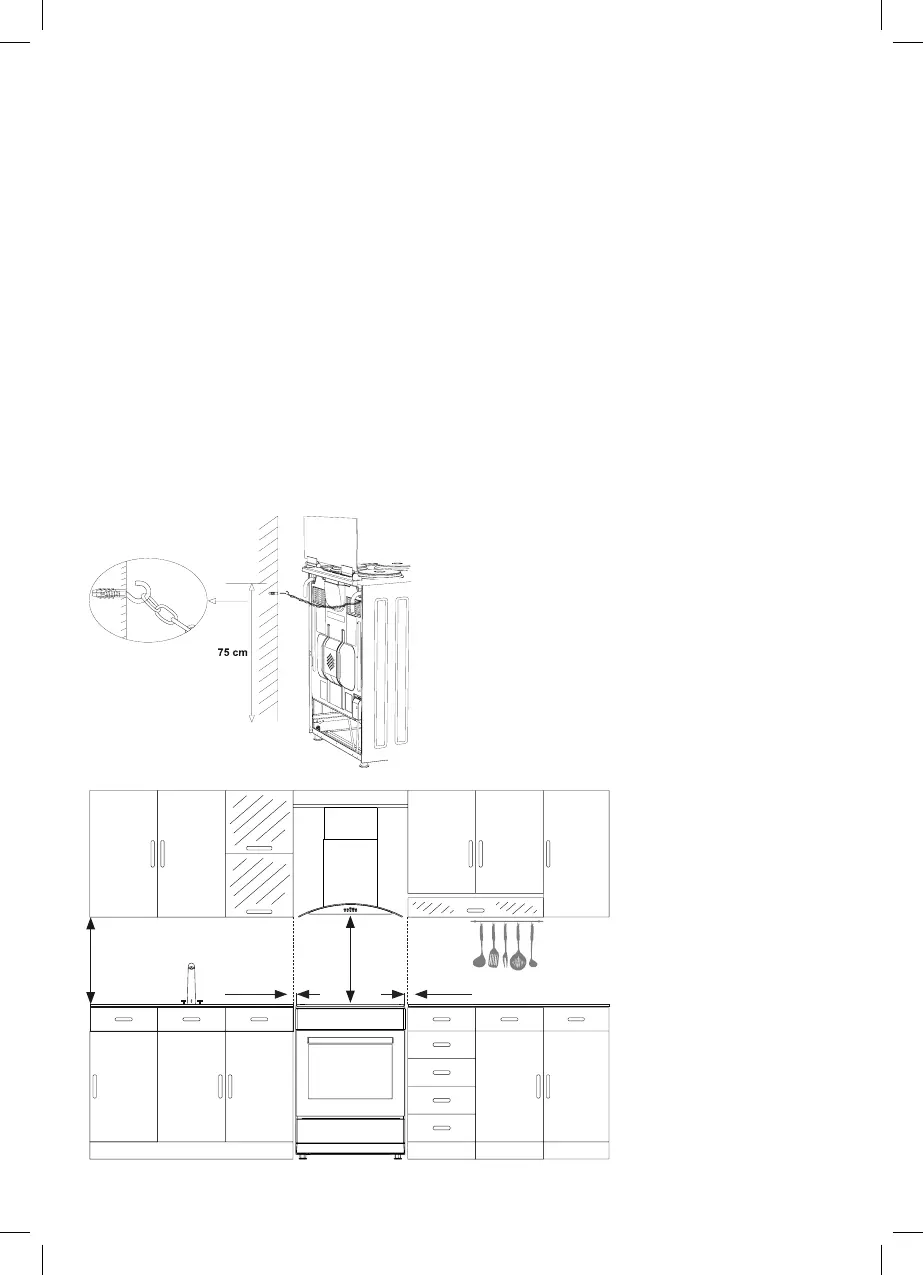 O aparelho deve ser usado com uma folga mínima de 400 mm sobre as superfícies superiores do fogão e a 6,5