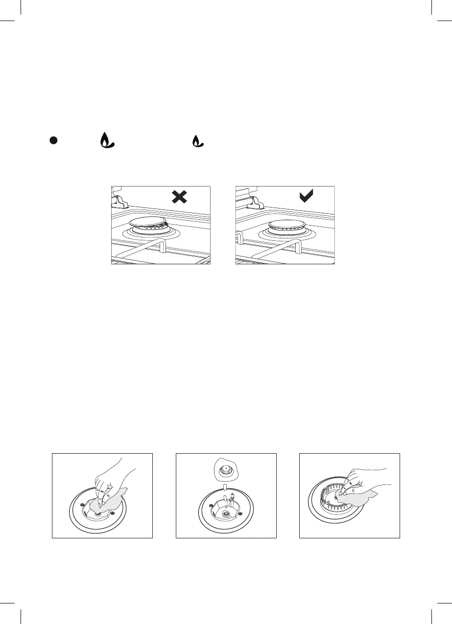 5. Antes de usar o seu fogão, assegurar que as tampas dos queimadores estão bem posicionadas. A colocação
