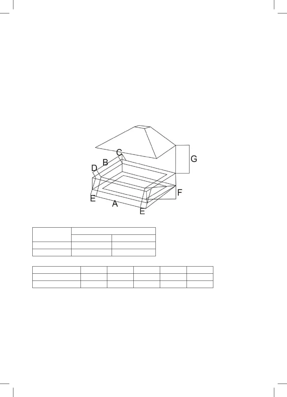 Ancho de la encimera C (mm) D (mm) E (mm) F (mm) G (mm)