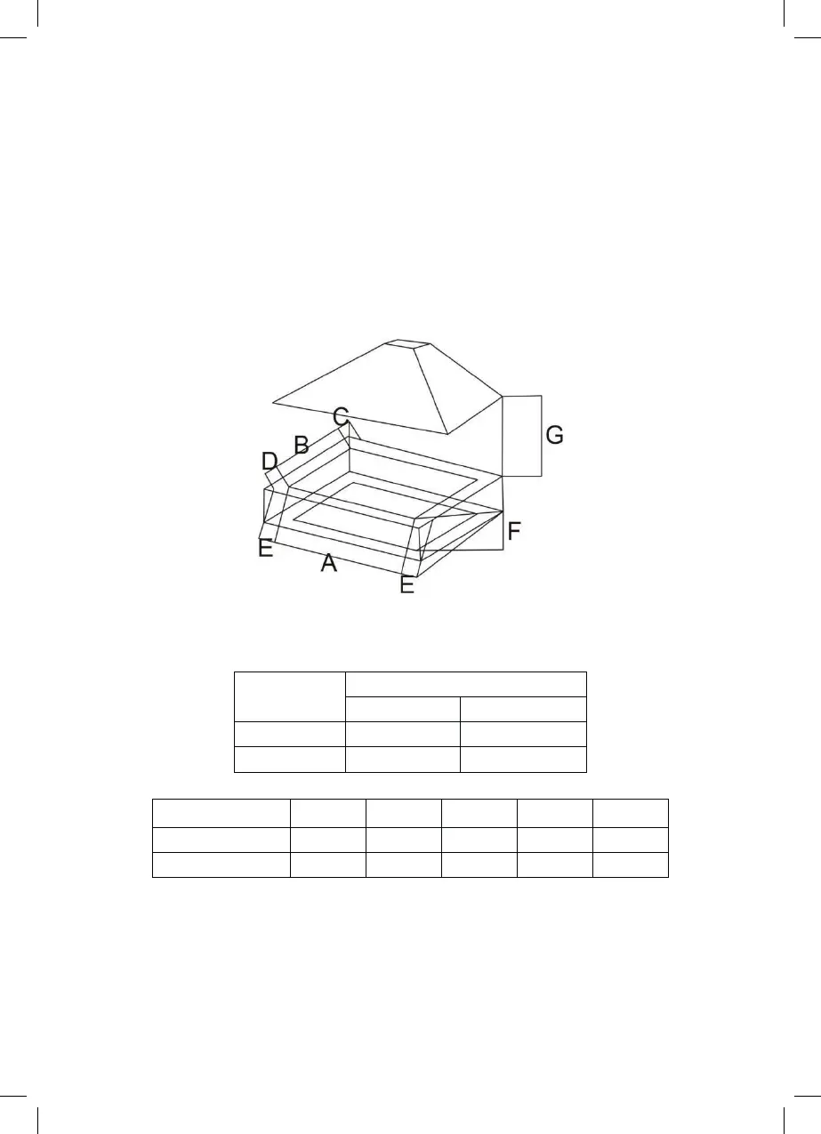 650 mm entre o ponto mais alto da superfície da placa de fogão (incluindo os queimadores) e a parte inferior de qualquer