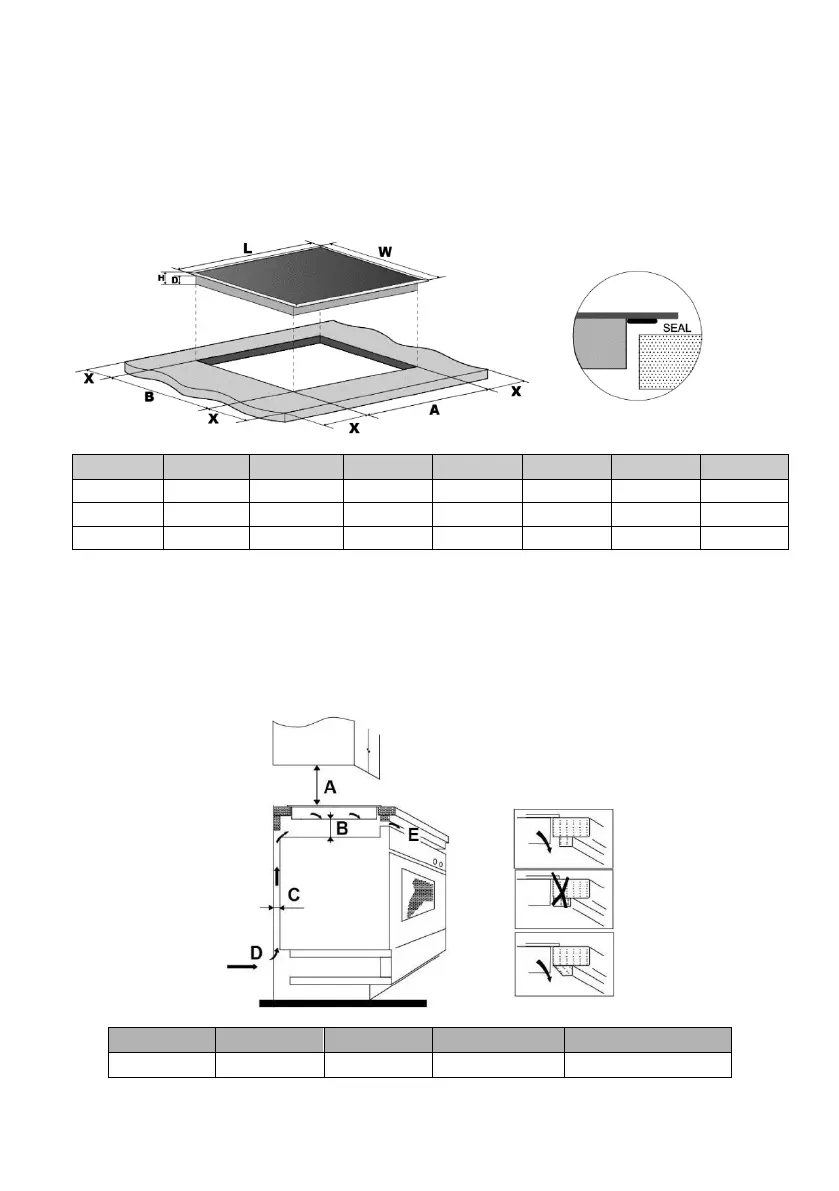 Nota: La distància mínima de seguretat entre la placa i l’armari situat sobre la placa ha de ser