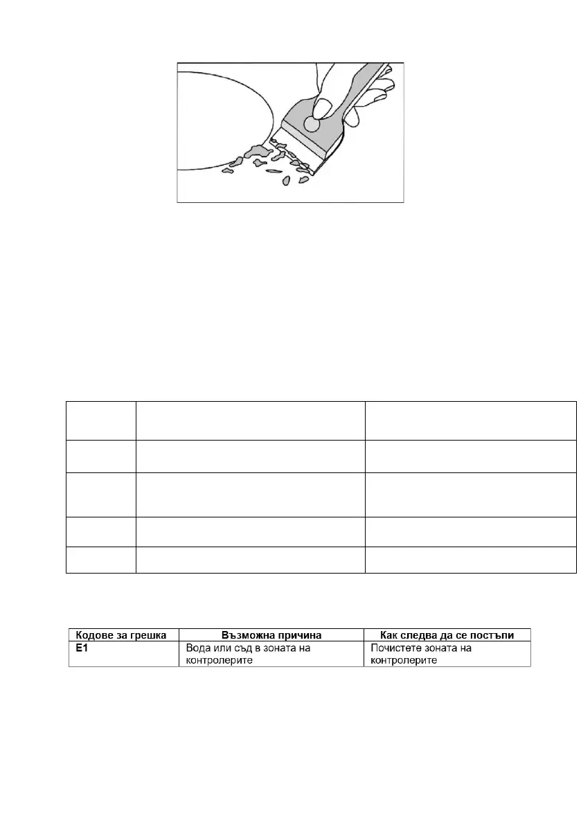 Следват кодовете за грешка, които могат да се появят на плочата в случай на