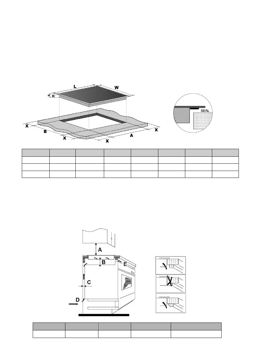Nota: A distância mínima de segurança entre a placa e o armário situado sobre a placa deve ser