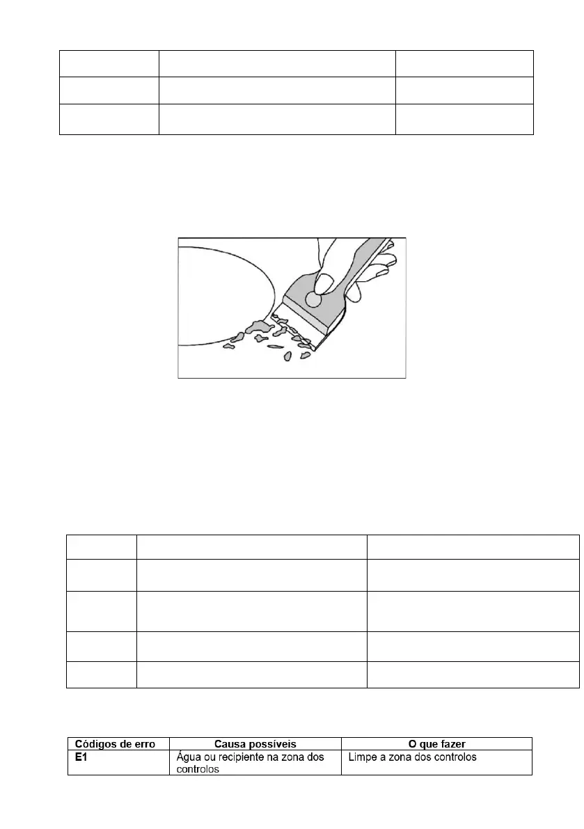 Com um raspador adequado, elimine imediatamente os restos de papel de alumínio, restos de