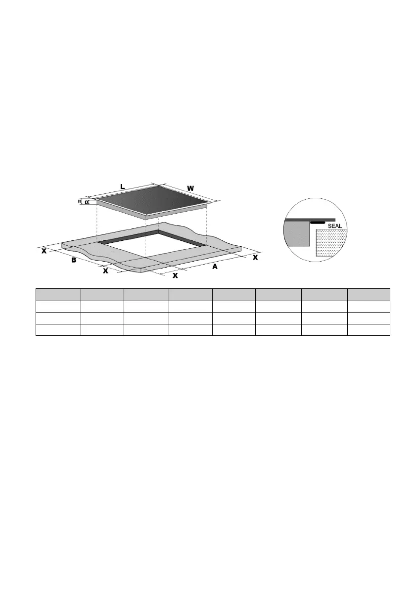 Note : La distance de sécurité minimum entre la plaque de cuisson et le meuble situé juste au-