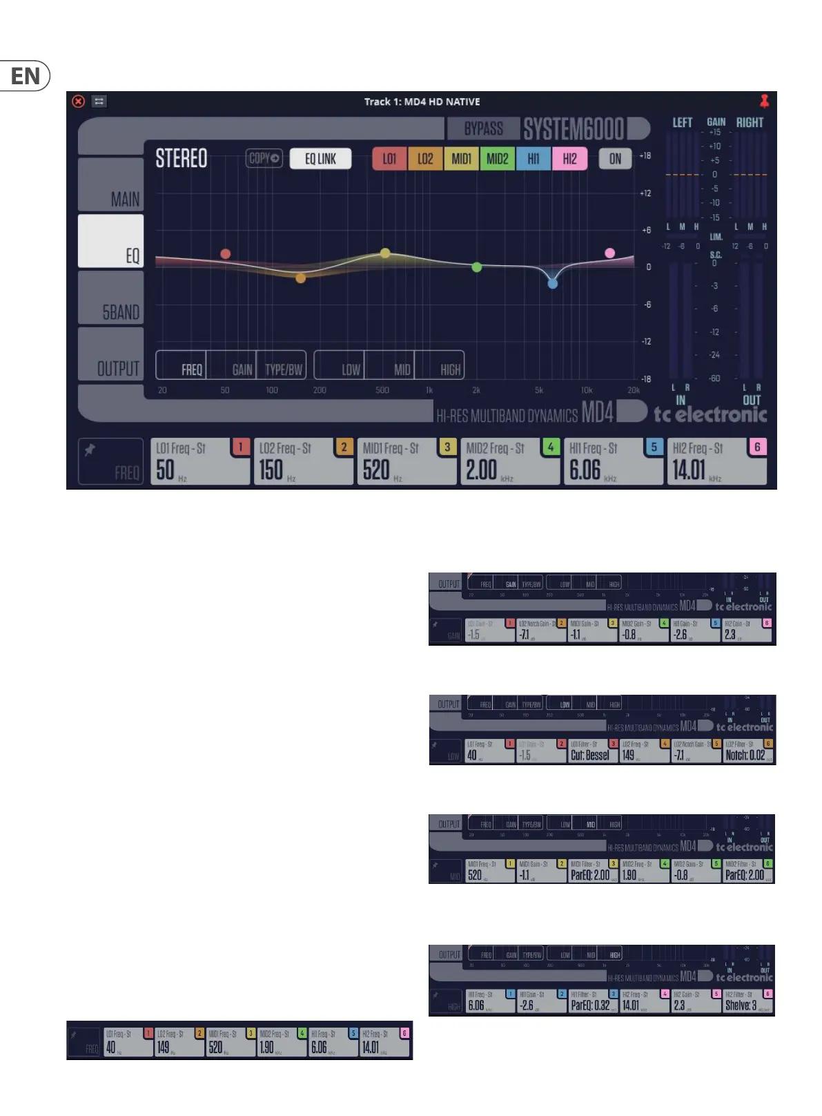 • • Below the graph, select Freq, Gain, Type/BW or Low, Mid, High to access