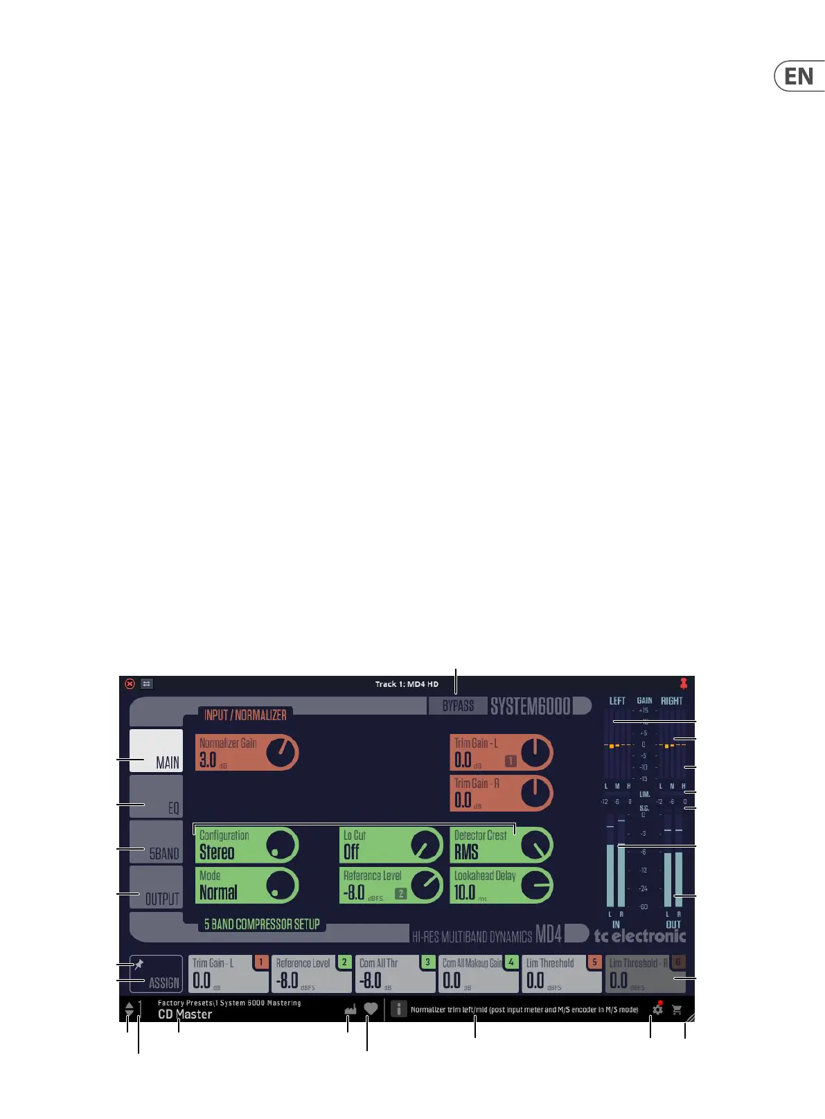 • • Main: This brings up controls for the normalizer gain, trim gain left,