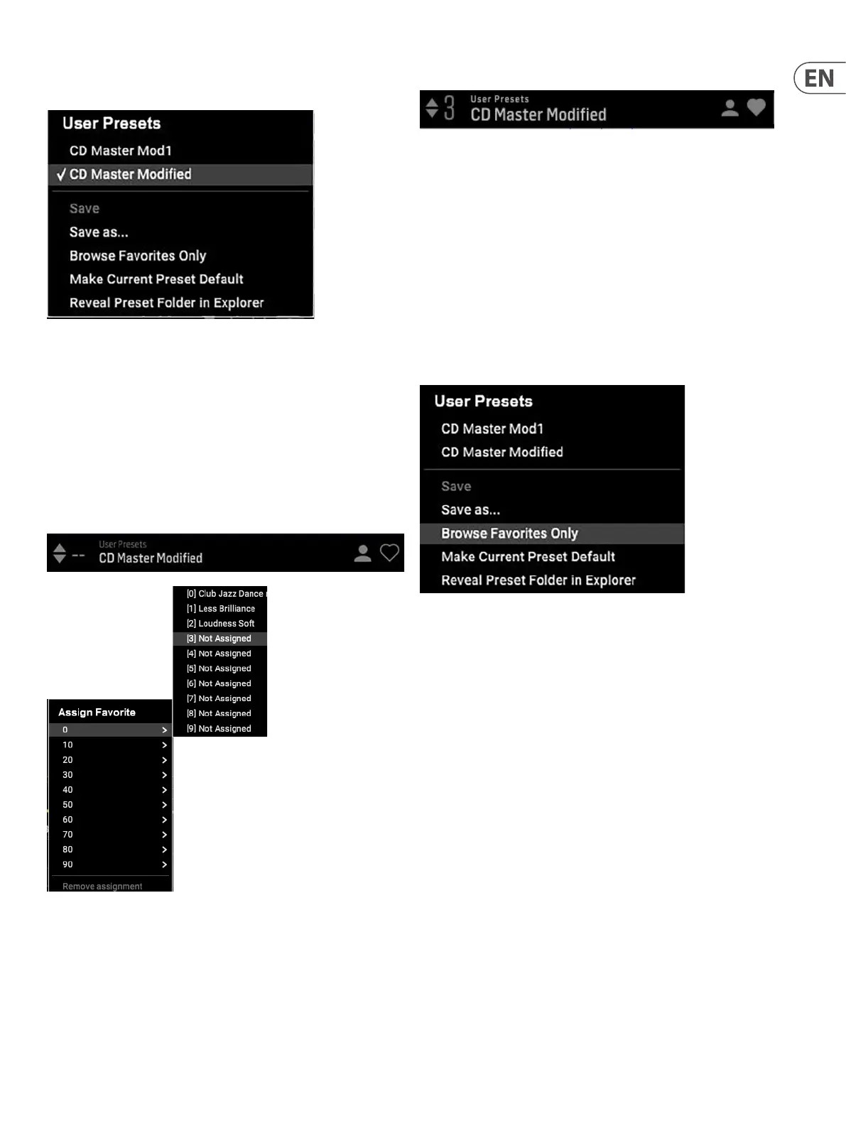 feature in the Favorite menu, then saving the preset.