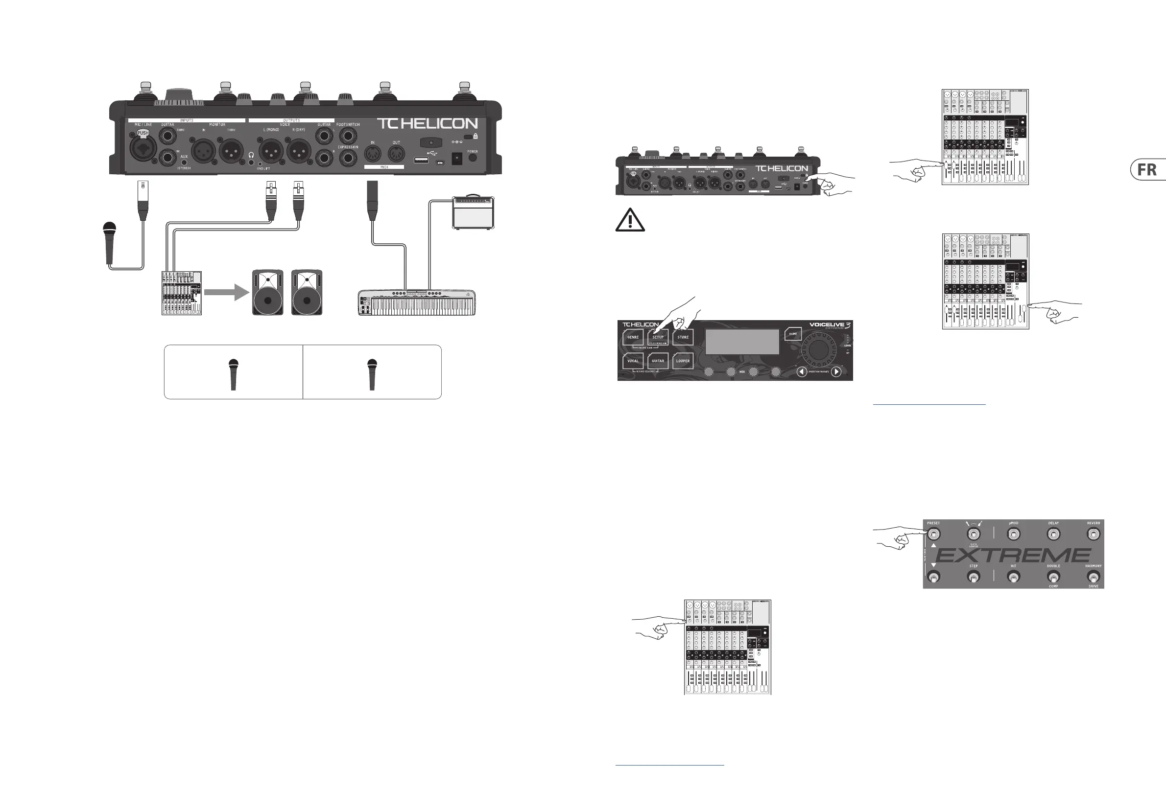 Avant de mettre le VOICELIVE 3 sous tension, assurez-vous que l'amplicateur ou