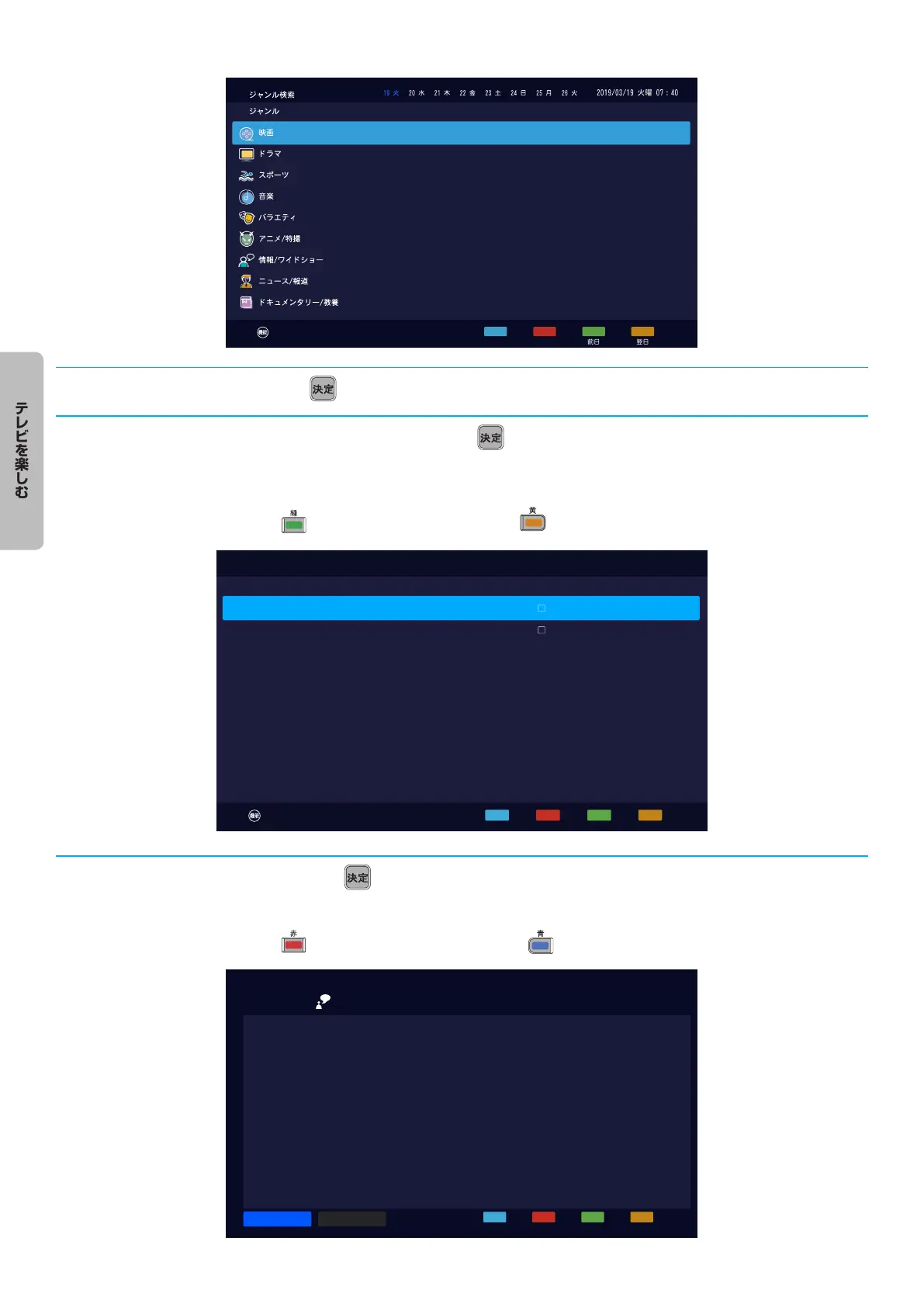 ● 指定されたジャンルの番組が、現在番組表で表示されている全ての放送 ( 地上 /BS/CS) の番組を対象に検索され、検索