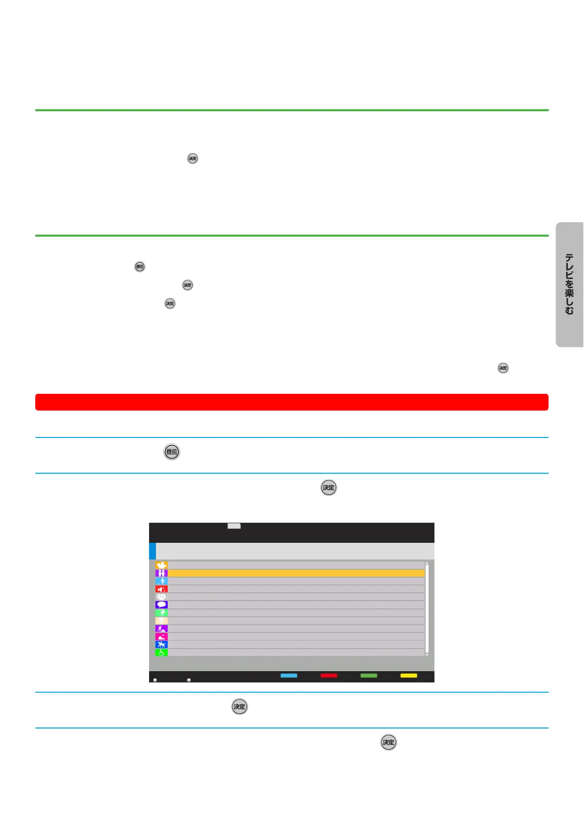 「番組の検索」.⇨「ジャンル検索」の順に進み、 を押す。