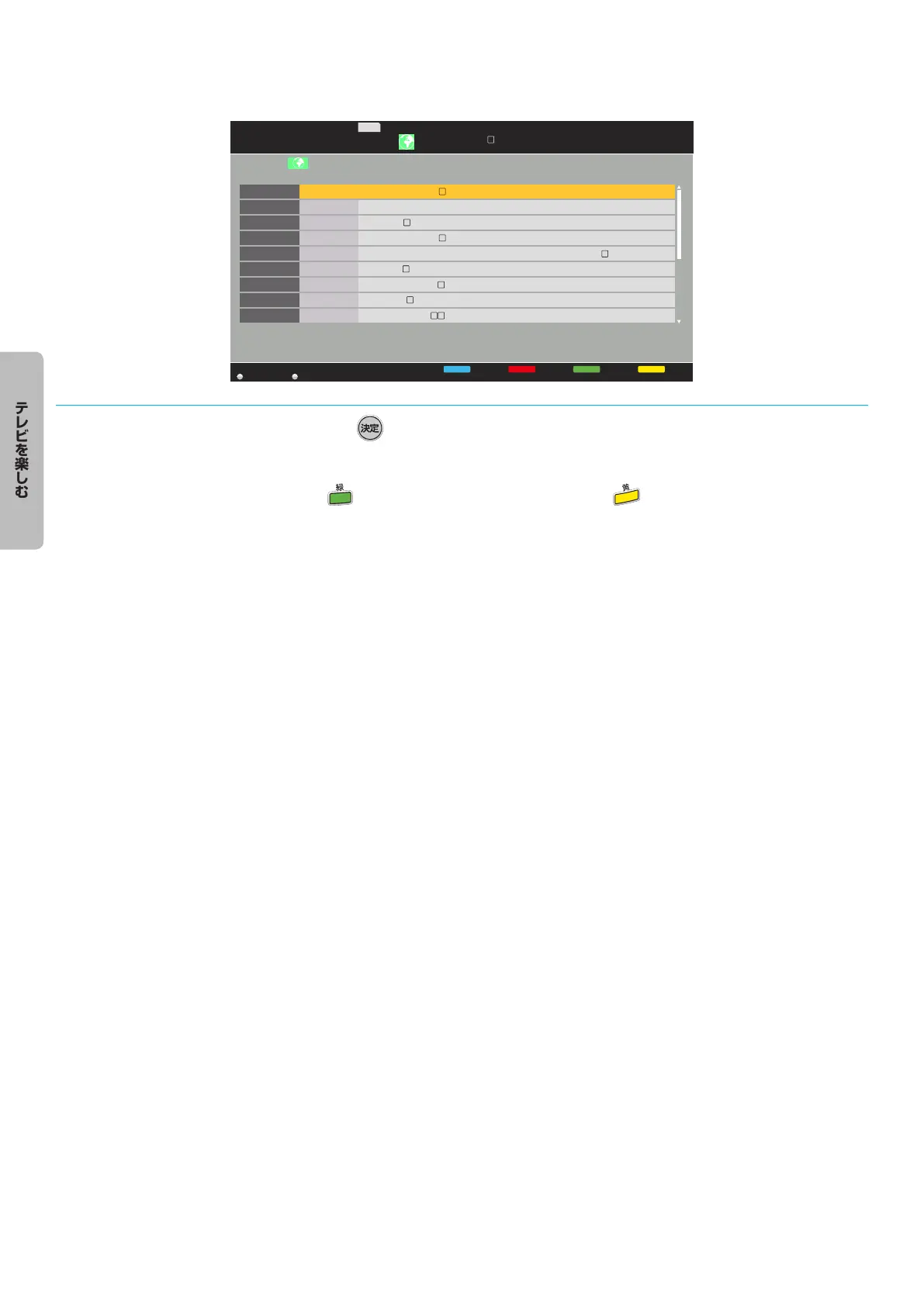 番組を.▲ · ▼ · ◀ · ▶.で選び、. を押す。