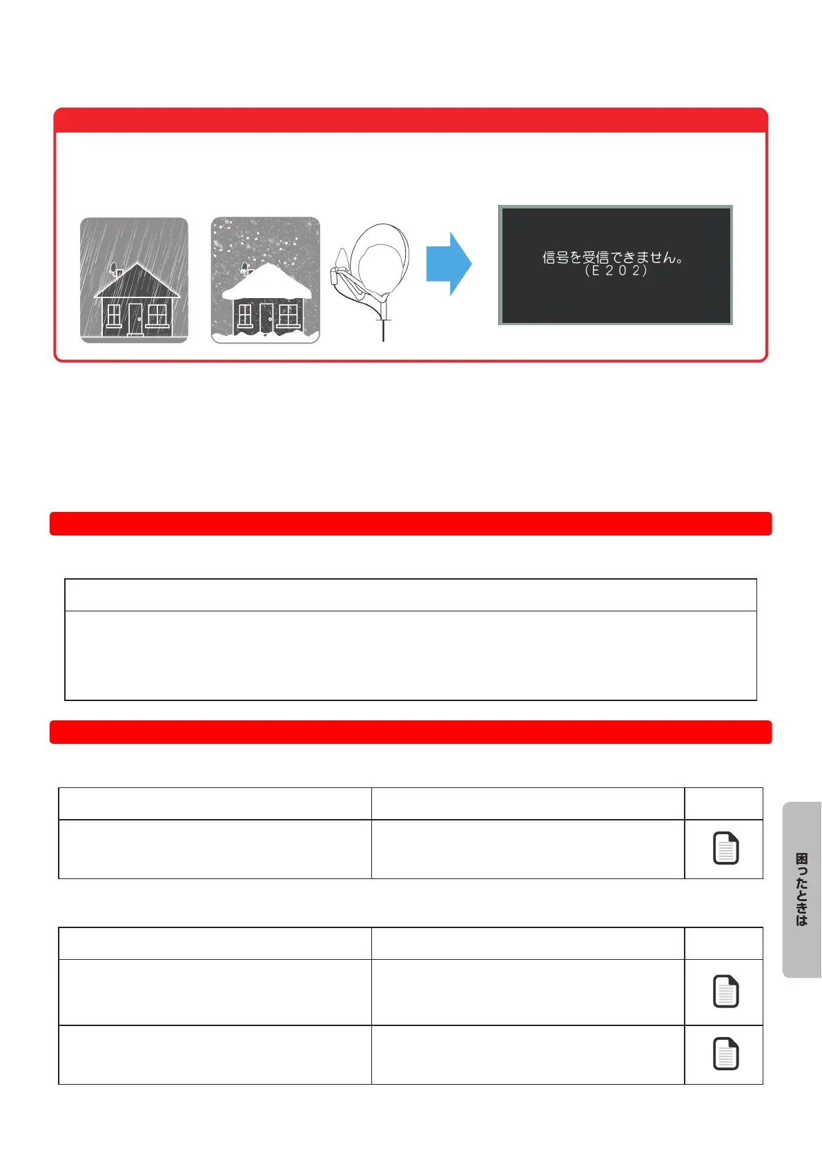 ● 雨や雪の影響で電波が弱いとき、映像にノイズが入ったり、映像が見られない原因となります。